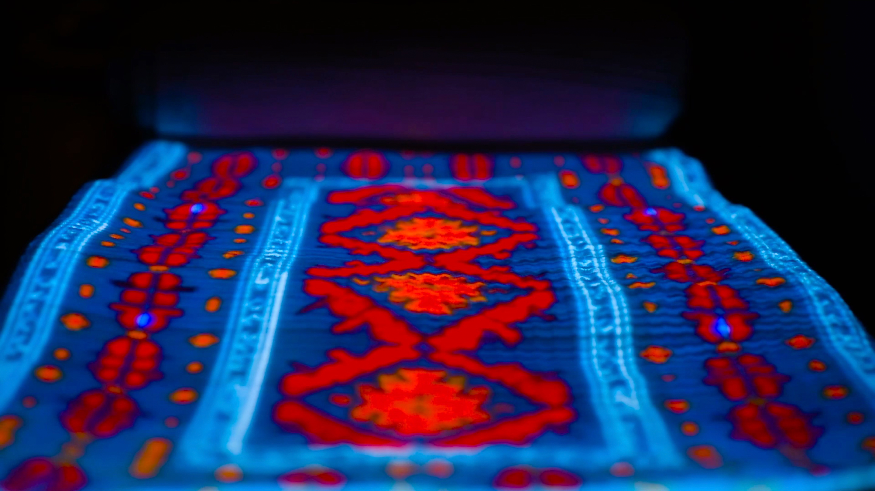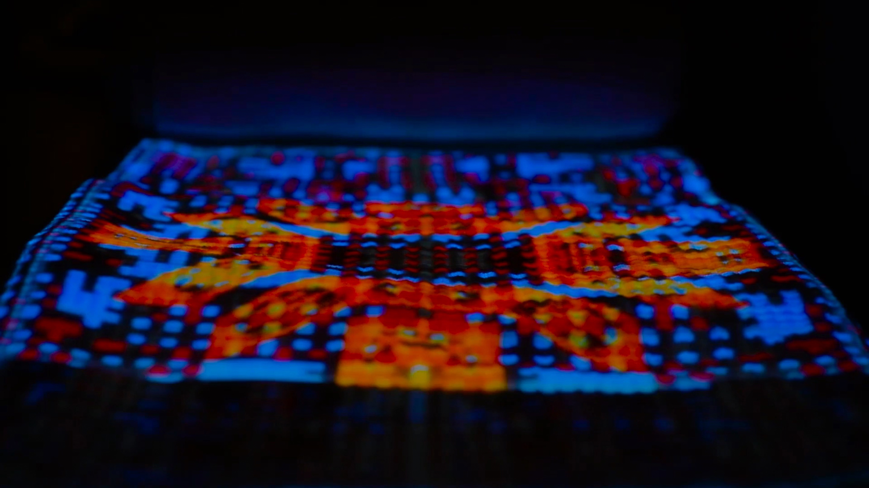 Media-augmented textile developed and animated for the exhibition "Palimpsest of ‘89" by Azra Akšamija, an artistic installation exploring the role of cultural institutions in shaping the common heritage of Yugoslavia through the lens of Sarajevo’s history.