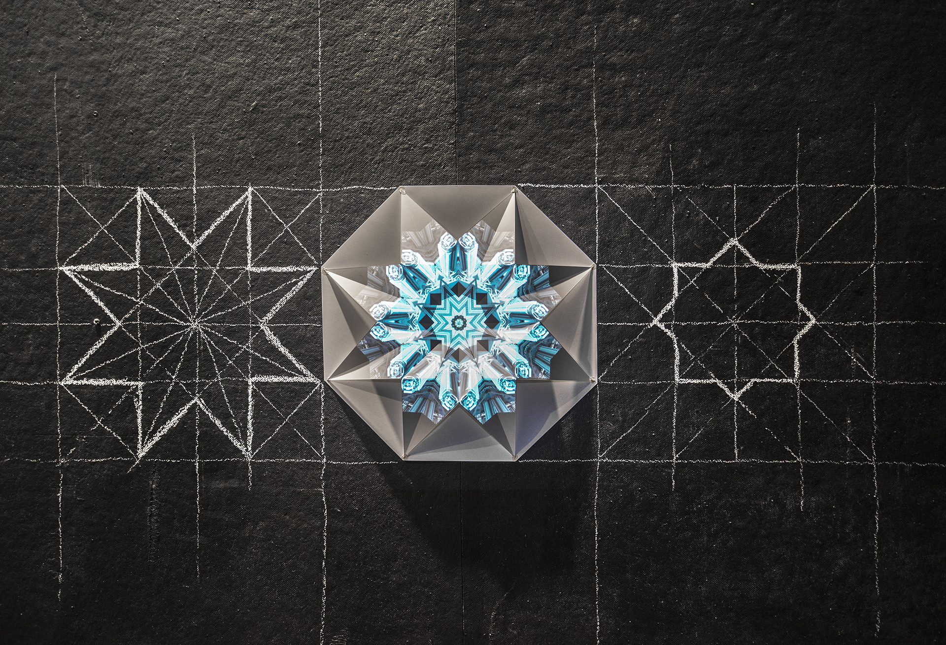 The AWESCOPE is a site-reactive prismatic video sculpture. The sculpture explores how deviating from the standard planar rectangular form of video media can expand and specialize how the content is understood. AWESCOPE treats video as if it were a simple mutable material, such as paper, bending and folding it with ease and formal purpose.